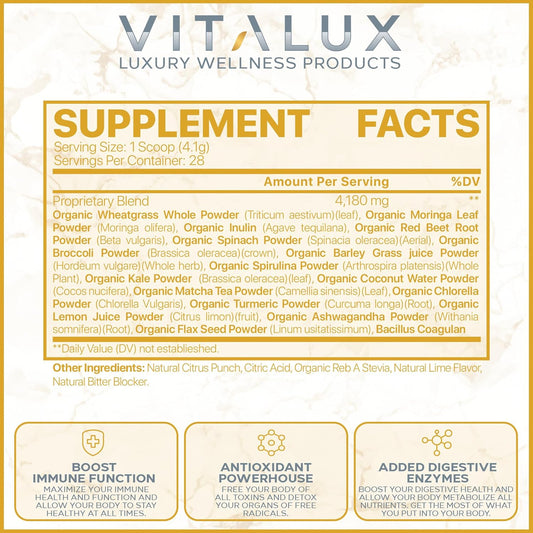 EPN Supplements VITALUX Premium Greens & Reds Superfood Powder - Immune Support, Antioxidants, Digestive Enzymes - 17 Ingredients - Vegan, USA Made - 28 Day Supply