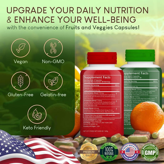 USA-Made ESUNM Fruits and Veggies Supplement - 90 Capsules Each for Energy, Lycopene, Vitamins & Minerals - Pack of 2 - 90 Count