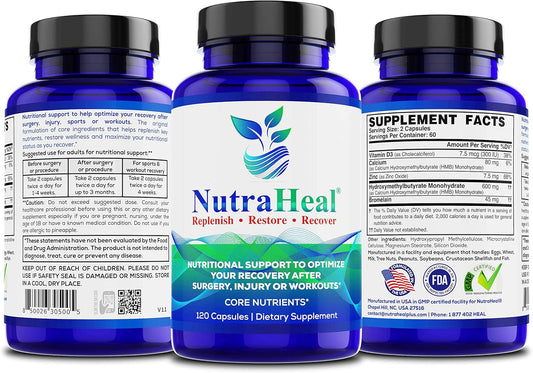 Immunity-Boosting Nutraheal Supplement with Vitamin D3, Calcium HMB, Zinc & Bromelain - 120 Capsules for Post-Surgery Recovery & Sports Injuries