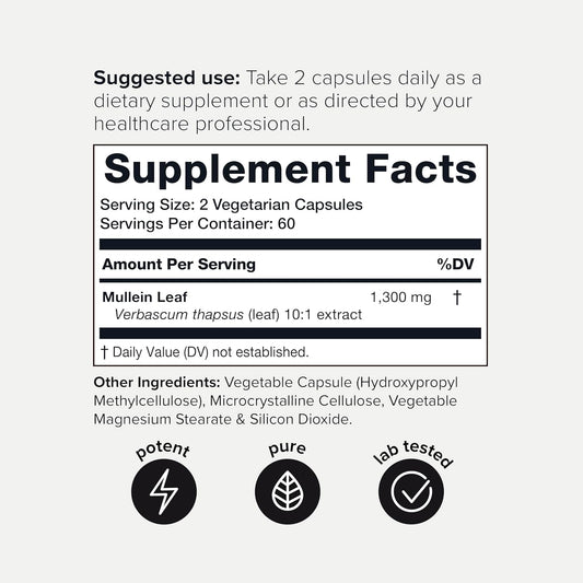 High Potency Toniiq Mullein Leaf Capsules - 10:1 Extract, 1300mg - Concentrated Formula, Third-Party Tested - 120 Capsules