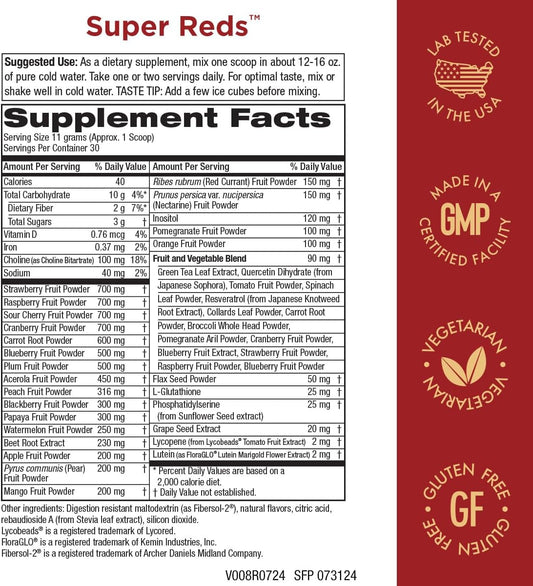 Purity Products Super Reds Powder Phytonutrient Superfood Drink Mix with FloraGLO Lutein - 330g - 30 Day Supply
