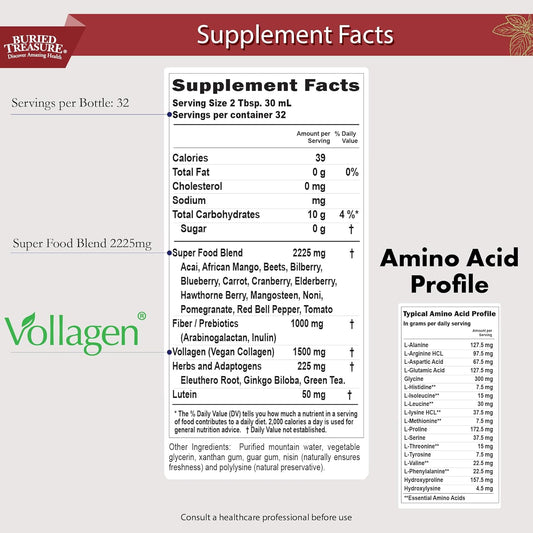 SuperFood Powder with Antioxidants, Beet Root, Elderberry, Green Tea - Liquid Reds Fusion - Vegan Amino Acids & Prebiotics - Buried Treasure Red20