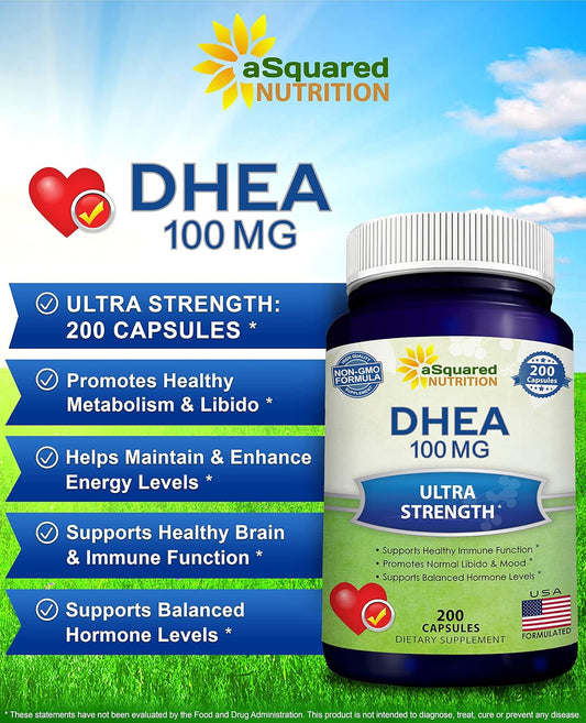 Max Strength DHEA Supplement (100mg, 200 Capsules) for Hormone Balance - Natural Pills for Metabolism, Libido, Brain, Immune Support & Energy Boost
