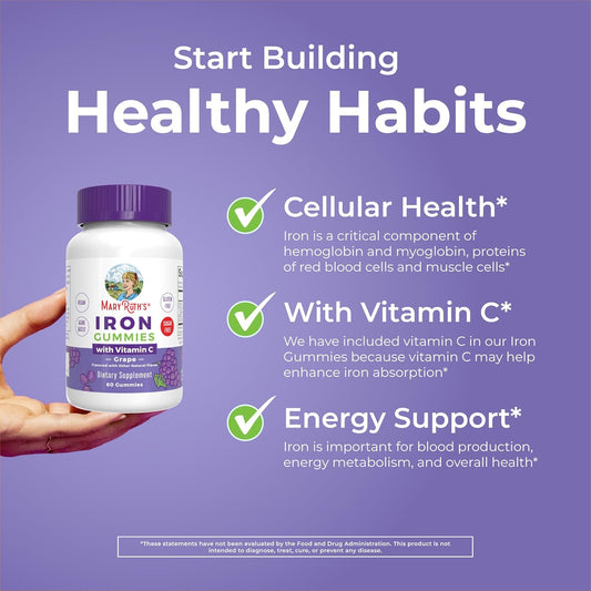 MaryRuth Organics Iron Gummy Supplements for Adults - 60 Count | Vegan Iron Supplement with Vitamin C for Immune Support | Sugar-Free Iron Deficiency Solution