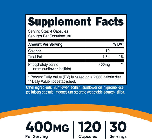 Nutricost Phosphatidylserine 400mg Capsules - Soy Free, 120 Count, Vegetarian, Non-GMO, Gluten Free