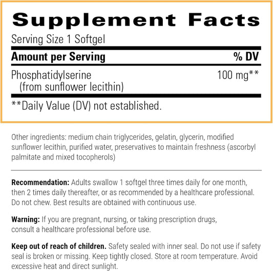 Sunflower Lecithin Phosphatidylserine Softgels - Brain Function & Stress Support Supplement - Men & Women - 60ct