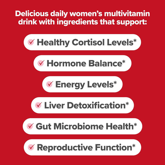 Women's Endocrine Superfood Powder with Rhodiola, DIM, and Red Superfoods - Supports Cortisol Levels, Hormonal Balance, Thyroid, and Gut Health - 25 Servings