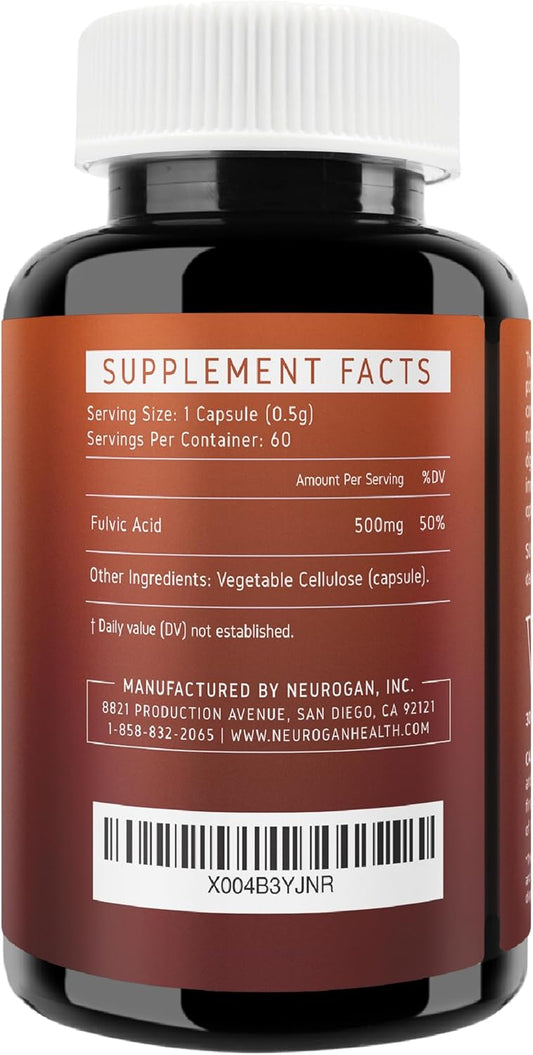 Organic Neurogan Fulvic Acid Capsules for Digestive & Immune Support | Boost Cellular Energy & Brain Function | Natural Mineral Complex from Shilajit | 500mg - 60 Count