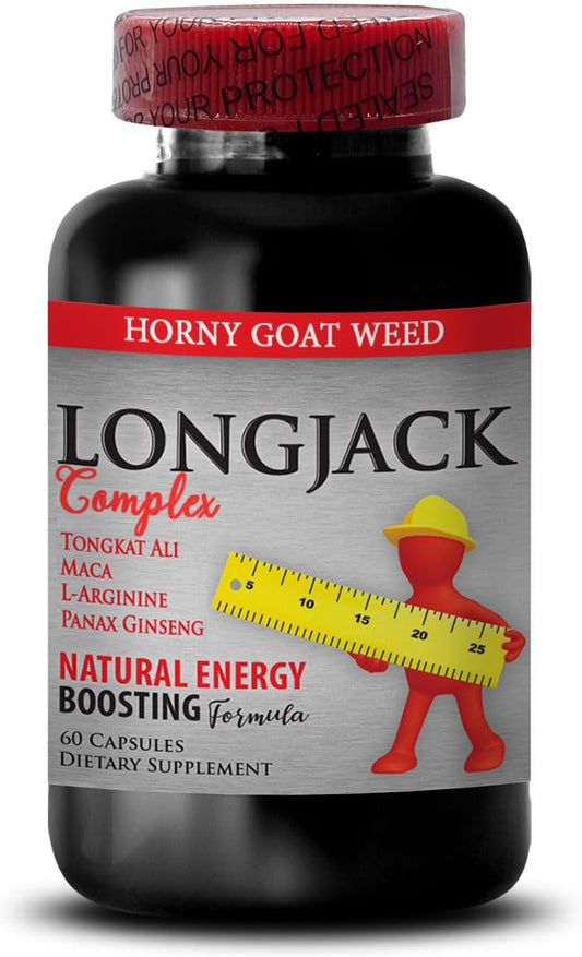Natural Longjack Tongkat Ali Male Enhancement Pills - Libido Booster & Fertility Supplement - Energy-Boosting Vitamins with All-Natural Formula - 60 Capsules