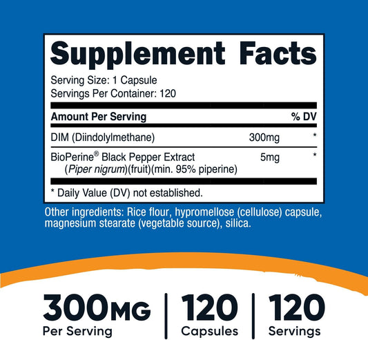 Nutricost DIM Plus BioPerine 300mg, 120 Veg Capsules - Max Strength Supplement, Up to 4 Months Supply