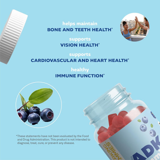 ADK Gummies Vitamins - 3000 iu A, 5000 iu D3, 500mcg K2 Supplement - Immune, Joint, Bone, Heart, Vision Support - Blueberry Flavor - 60 Count