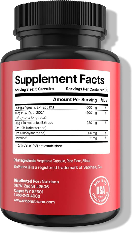 Energy Boosting Complex for Men - Nutriana Longjack Tongkat Ali Fadogia Agrestis & Turkesterone - 90 Capsules, 600mg