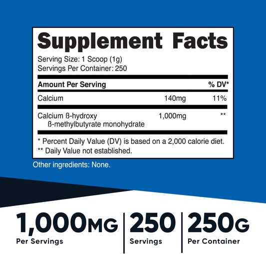 Nutricost HMB Powder - Gluten Free & Non-GMO - 250g Beta-Hydroxy Beta-Methylbutyrate Formula