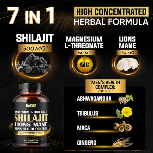 Premium Male's Health Complex Capsules with Magnesium L-Threonate, Lions Mane, Shilajit, Ashwagandha, Maca Root & More - 210 Capsules for Immune, Brain Health, Energy