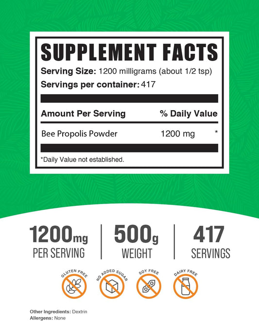 BulkSupplements Bee Propolis Powder - Antioxidant Support Supplement - Gluten Free - 1200mg per Serving, 417 Servings - 500g - 1.1 lbs