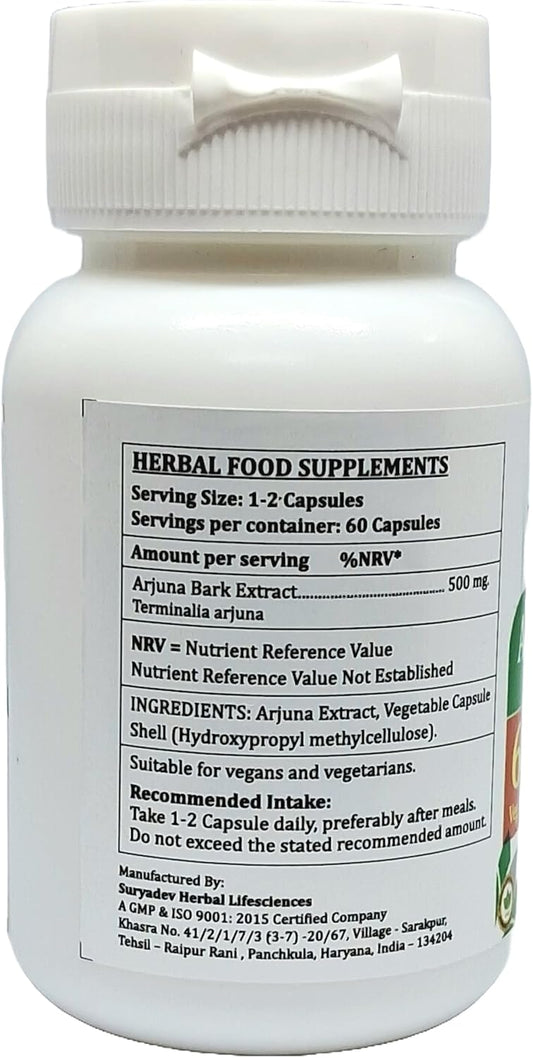 Satya Naturals Arjuna Forte Capsules 500 mg - Ayurvedic Herbal Supplement for Men and Women - 60 Veg Capsules (1 Bottle)