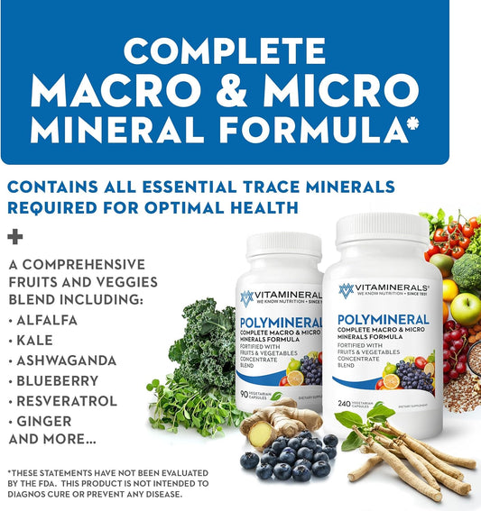 Vitaminerals 16 Polymineral Formula with 240 Veggie Caps - Comprehensive Mineral Supplement