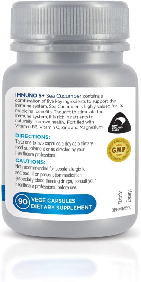Immuno 5+ Sea Cucumber Capsules for Immunity Support - With Vitamin B6, Vitamin C, Zinc, and Magnesium - 90 Veg Caps