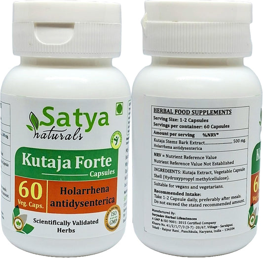Ayurvedic Satya Naturals Kutaja Forte Capsules 500mg - Holarrhena Antidysenterica Extract for Men & Women - Herbal Supplement - 10:1 Forte - 2 Bottles of 60 Capsules