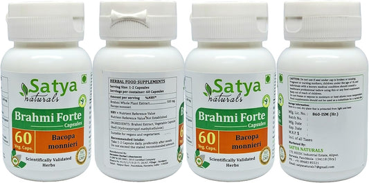 Brahmi Forte Capsules 500mg - Ayurvedic Herbal Supplement for Men and Women - 4 Bottles of 60 Veg Capsules - Satya Naturals