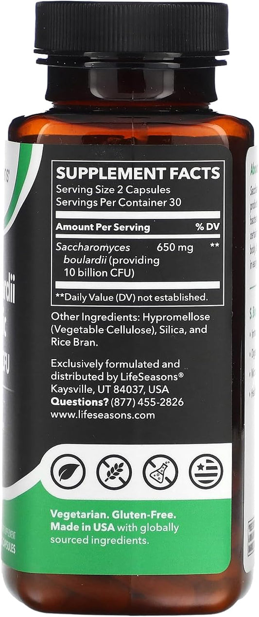 LifeSeasons S. Boulardii Probiotic Capsules - Supports Immune Function, Digestive Regularity, & Gut Health - Saccharomyces - 60 Count