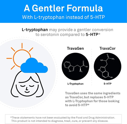 TravaGen Mood Support Supplement with L Tryptophan, L Theanine, and Vitamin B12 Complex for Calm and Serotonin Boost - 120 Capsules
