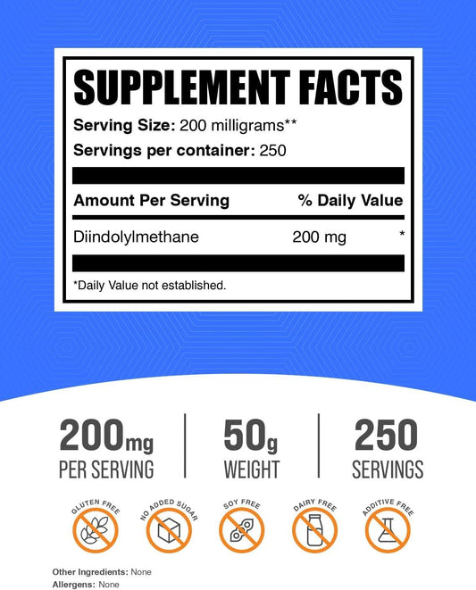 BulkSupplements.com Diindolylmethane Powder - DIM Supplement for Men & Women - 200mg per Serving, Gluten Free - 50g (1.8 oz) Pack