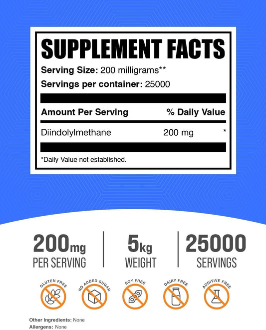 BulkSupplements.com Diindolylmethane Powder - Liver Support Supplement, Gluten & Soy Free - 200mg per Serving (5kg)