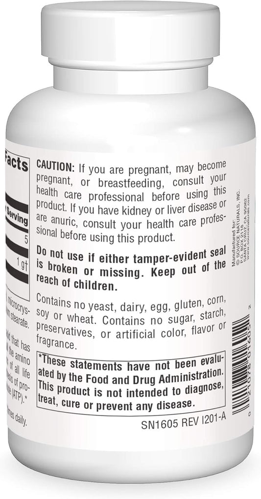 Source Naturals Glycine 500mg Capsules - 200 Count Amino Acid Supplement