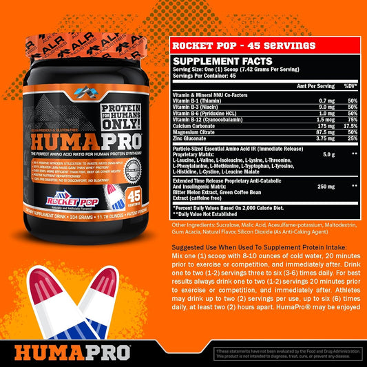 Humapro Amino Acid Protein Matrix - 99% Utilization for Lean Muscle - Vegan & Gluten Free - 334g / 45 Servings - Rocket Pop FlavorVendor:My StoreRegular price $148.40 AUDRegular priceUnit price / per-