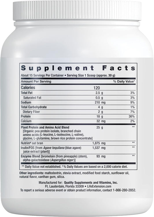 Life Extension Wellness Code® Vanilla Plant Protein Powder with Amino Acids - 450 Grams, Gluten-Free, Non-GMO, Vegetarian