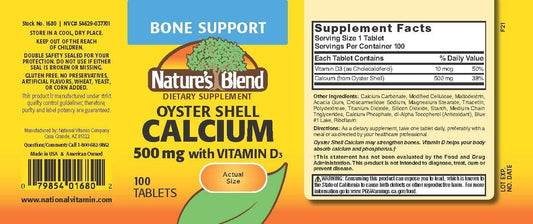 100 Tabs of Nature's Blend Oyster Shell Calcium with Vitamin D3 Supplement