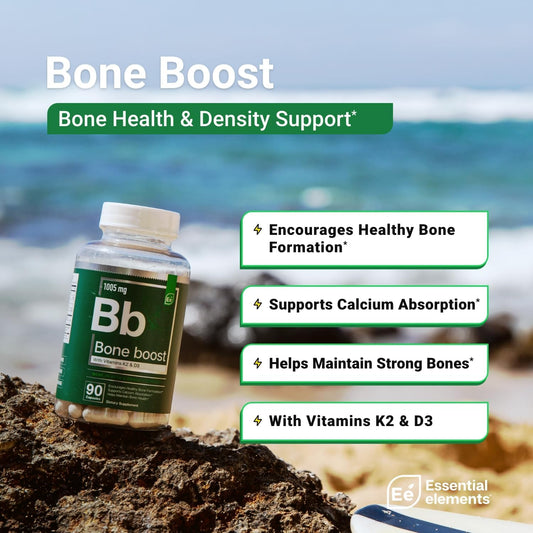 270 Capsules Essential Elements Bone Boost Bone Health Supplement with Vitamin D3, K2, and Cissus Quadrangularis for Bone Strength - 90 Day Supply - Pack of 3