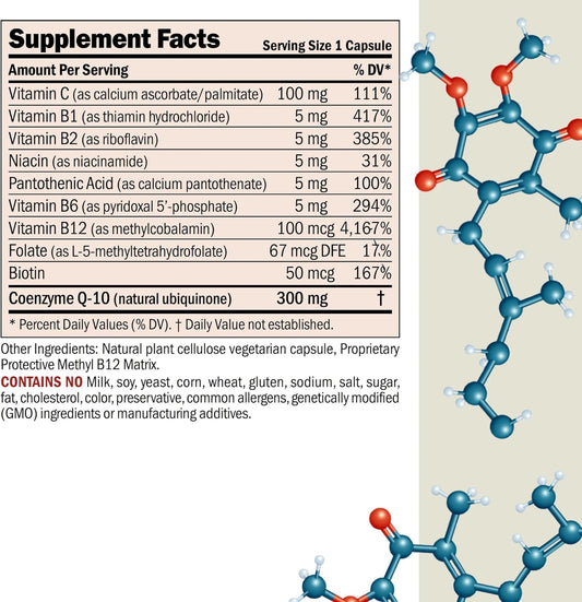 300 mg Coenzyme Q-10 Capsules - Boost Energy & Organ Function, Anti-Oxidant Support, B-Complex - 120 Capsules