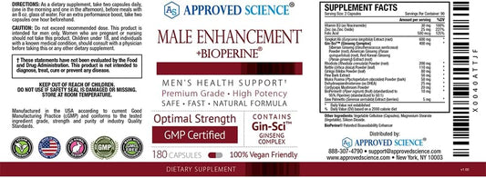 180 Vegan Male Enhancement Capsules for Boosting Performance and Drive - Approved Science® Formula