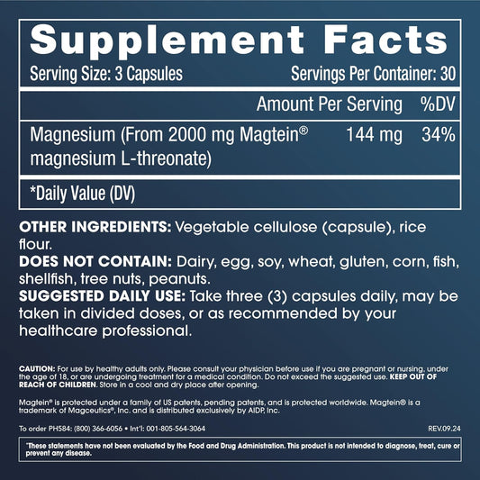 3-Pack ProHealth Magnesium L-Threonate (Magtein) Capsules - Clinically Proven for Brain Health - Enhance Learning, Memory, Focus - 270 Capsules Total