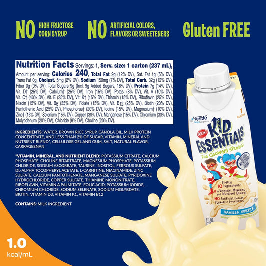 24-Pack BOOST KID ESSENTIALS 1.0 Vanilla Vortex 8 fl oz Cartons