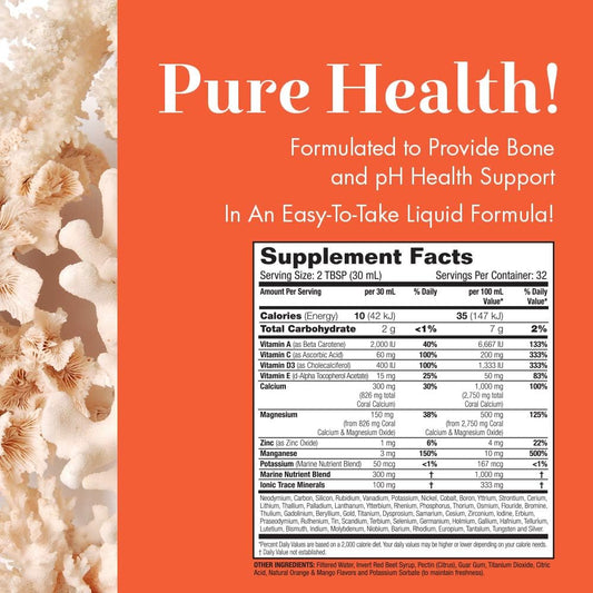 Coral Calcium Complex Liquid Supplement with Magnesium for Bone Health & PH Support - 32oz Size