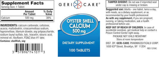 100 Count Gericare Oyster Shell Calcium 250mg and Vitamin D 125IU Tablets for Bone Health