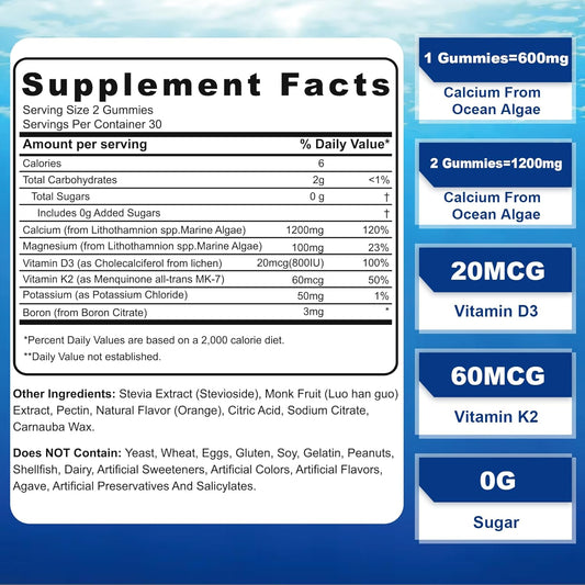 Plant-Based Calcium Supplement with D3, K2, and Magnesium for Bone Health - Vegan Gummies, 2 Pack