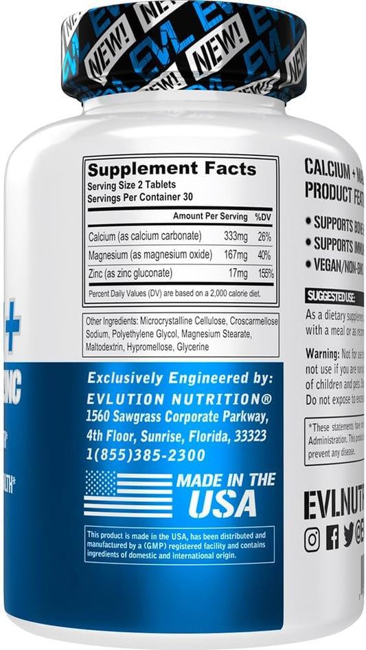 Vegan Calcium, Magnesium, Zinc Supplement for Bone, Muscle, Immune Health - Non-GMO - 30 Servings
