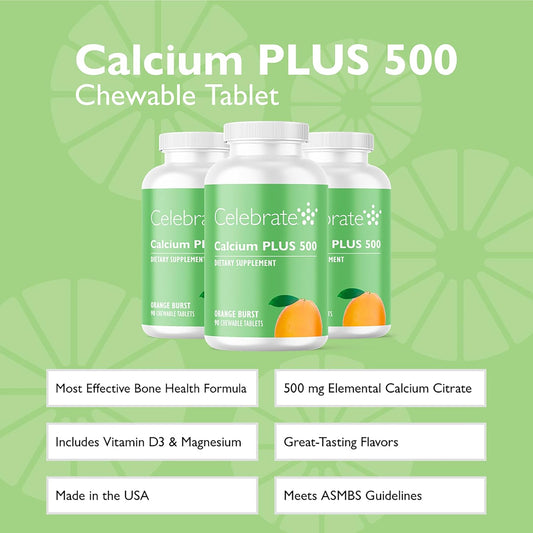 Celebrate Vitamins Calcium Plus Chewable Tablets for Post Bariatric Surgery - Gluten-Free & Sugar-Free - Orange Flavor, 270 Count