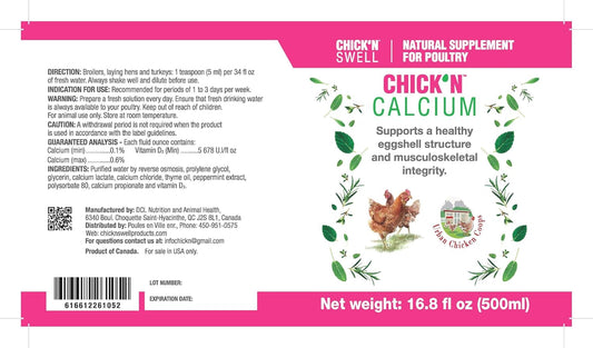 Chick’N Swell Premium Poultry Calcium Supplement for Bone Health and Egg Production - 16.8 oz - Suitable for All Poultry - Makes 80 Gallons