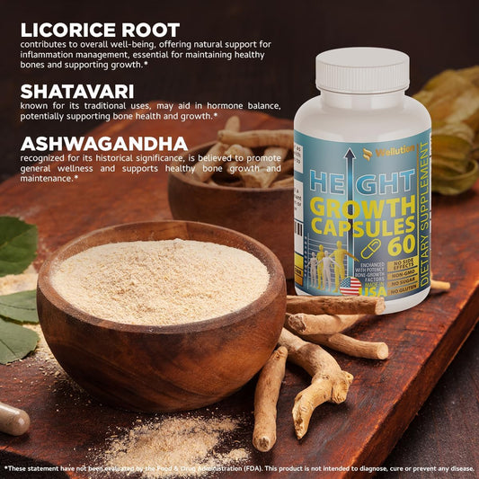 USA-Made Height Growth Maximizer Supplement with Calcium for Bone Strength and Support by WELLUTION