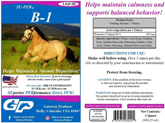 Equine Calming Liquid Supplement with Vitamin B-1 - Horse Calmer and Appetite Booster - 1 Quart, (2 Pack)