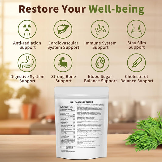 12 oz Hudetex Barley Grass Juice Powder - Pure Wheatgrass Powder for Cardiovascular, Liver & Digestive Health - Vegan & Sugar-Free