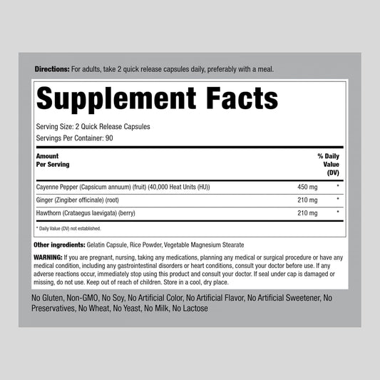 Cayenne Pepper Capsules 180 Pills with Ginger and Hawthorn Berry Herbal Supplement Non-GMO Gluten Free