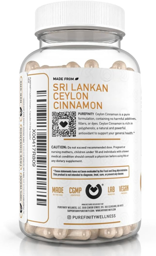 1500mg Purely Holistic Ceylon Cinnamon Capsules - 150 Vegan Capsules - 75 Day Supply - Sri Lankan Cinnamon Supplement