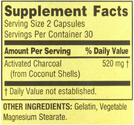 Activated Charcoal Dietary Supplement - 520 mg Capsules, 60 Count - Top Care Brand