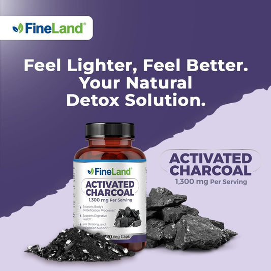 Detox Cleanse Support Capsules with Activated Charcoal - 1,300mg, Alleviates Gas & Bloating, Supports Arteries & Blood Circulation, 120 Vegan Pills